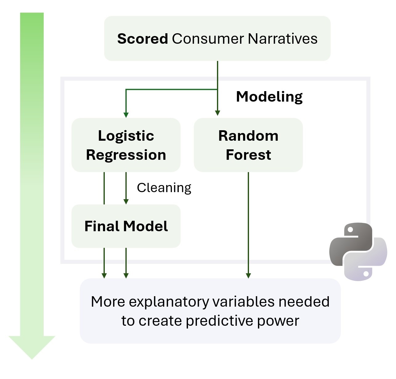 While the severity scoring proved effective for quickly identifying consumer complaints for high priority triage, predicting severity from product and issue categories alone proved insufficient, suggesting that financial institutions need more than publicly available CFPB variables to predict high-severity complaints effectively.