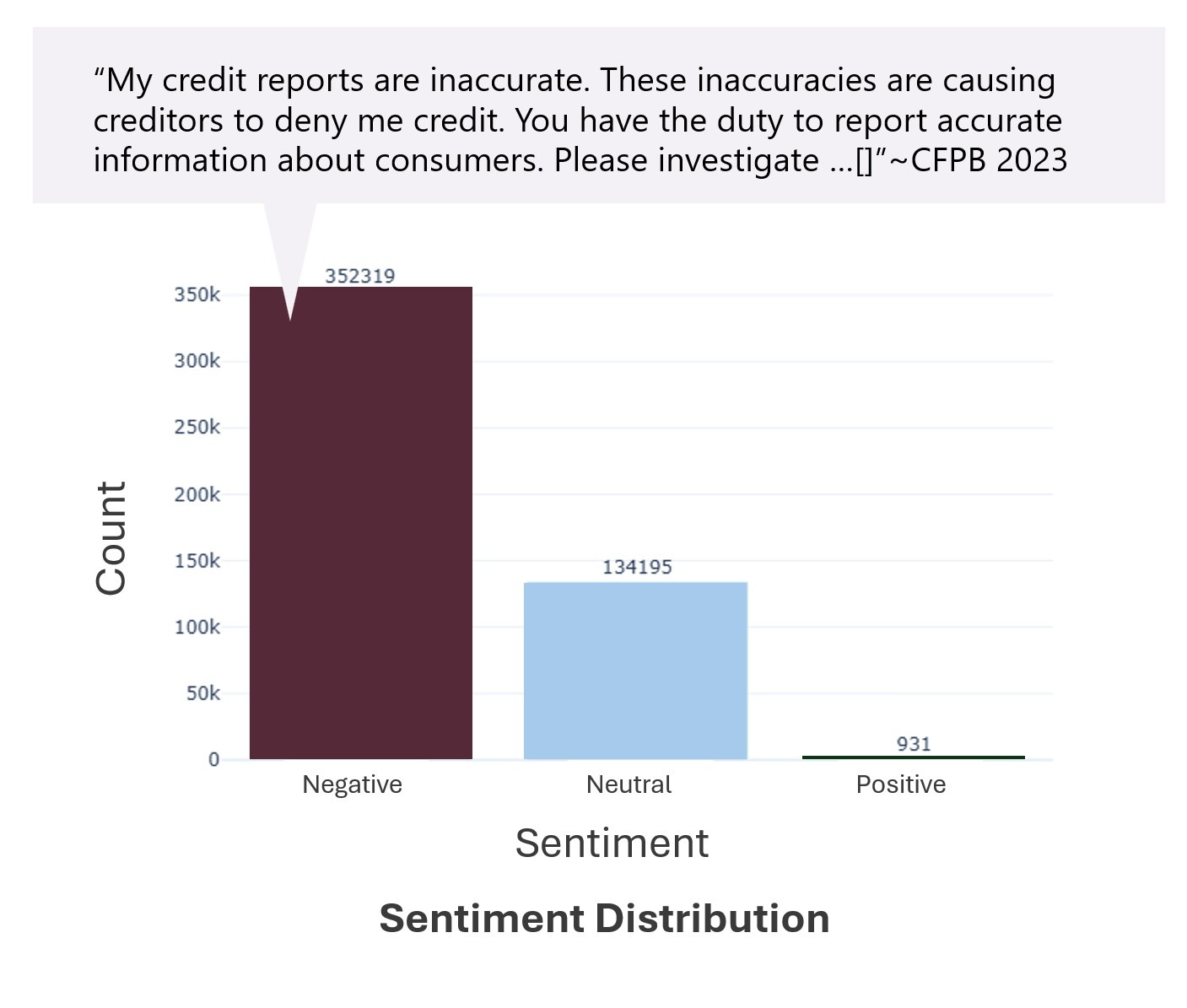 These narratives highlighted gratitude for the role the CFPB played in resolving their financial disputes. This finding, combined with Wang et al. (2024) research showing that public complaint data improves corporate social responsibility, demonstrates that regulatory transparency produces tangible benefits. When consumer complaint data is publicly available, institutions are held to higher standards and consumers benefit from increased accountability.